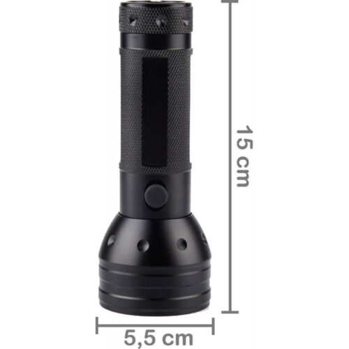 – Passez la Lumière Noire du Détecteur de Tache au-dessus de la surface pour déceler la contamination. La structure cristalline de l’urine séchée produit par fluorescence une couleur mate jaune/vert.